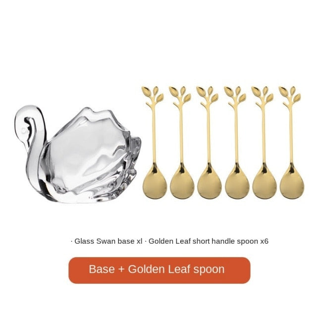 European Style Exquisite High-end Petal Fruit Fork Spoon Set with Spoon Swan Glass